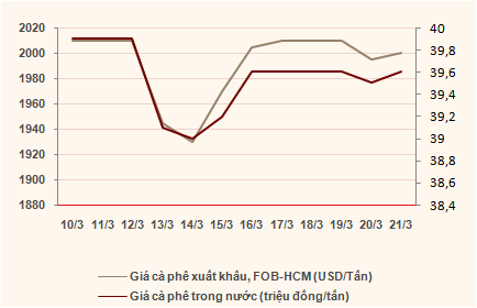 Chốt phiên hôm qua, giá cà phê robusta kỳ hạn tháng 3 tăng 11 USD lên 2.031 USD/tấn và kỳ hạn tháng 5 tăng 8 USD lên 2.036 USD/tấn.