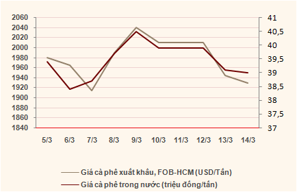 Giá cà phê xuất khẩu loại 5% đen vỡ giao tại cảng TPHCM có giá 1.930 USD/tấn, FOB, mức trừ lùi 40 USD/tấn.Tại New York, giá cà phê arabica giao tháng 3 tăng 2,75 cent/pound tương đương 1,64%, lên 182,6 cent/pound trong khi giá giao tháng 5 tăng 0,3 cent/pound trương đương 0,16% lên 185,15 cent/pound.